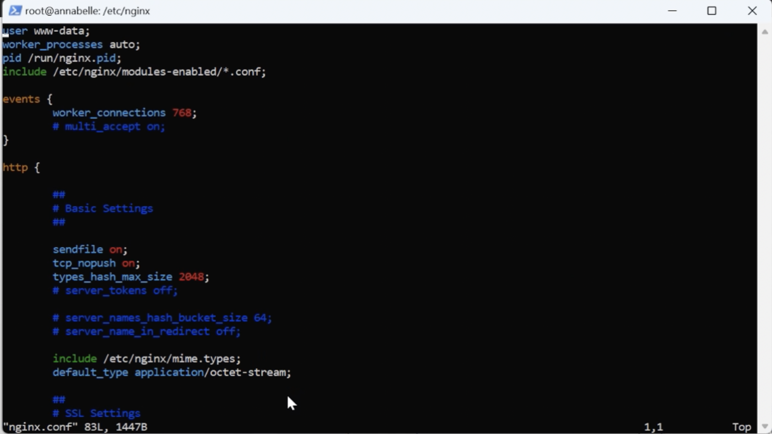 vim nginx config
