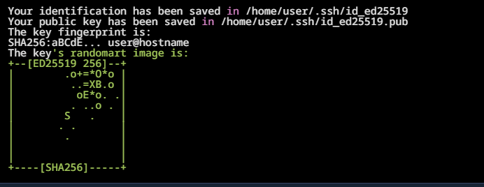 После этого генерация SSH-ключа будет завершена. Вы увидите подтверждение и «отпечаток» (fingerprint) ключа.