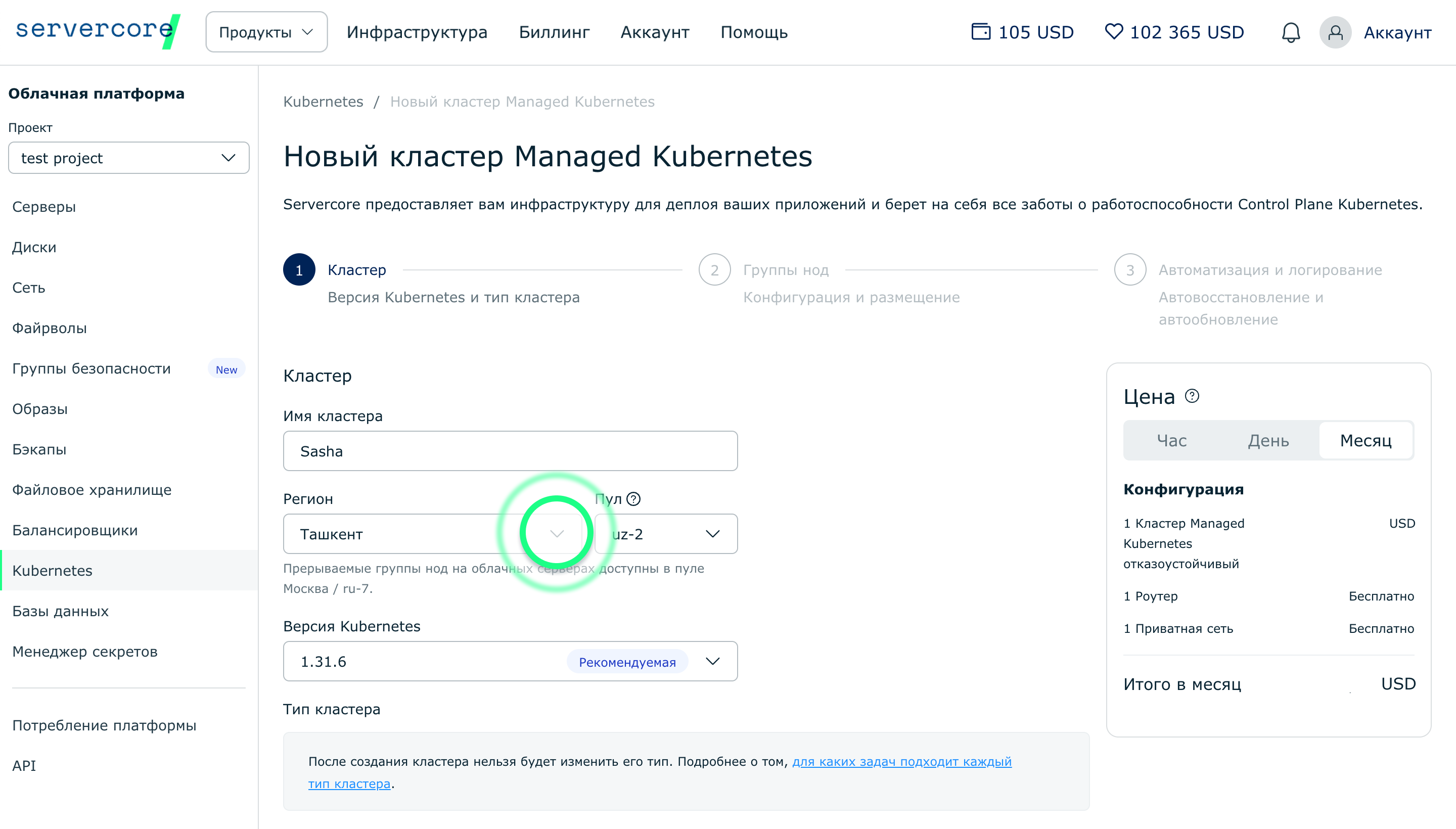 Итоговая цена будет различаться в зависимости от типа кластера, который вы выберете — базовый или отказоустойчивый. Базовый кластер включает в себя 1 мастер-ноду, а отказоустойчивый — 3 мастер-ноды.